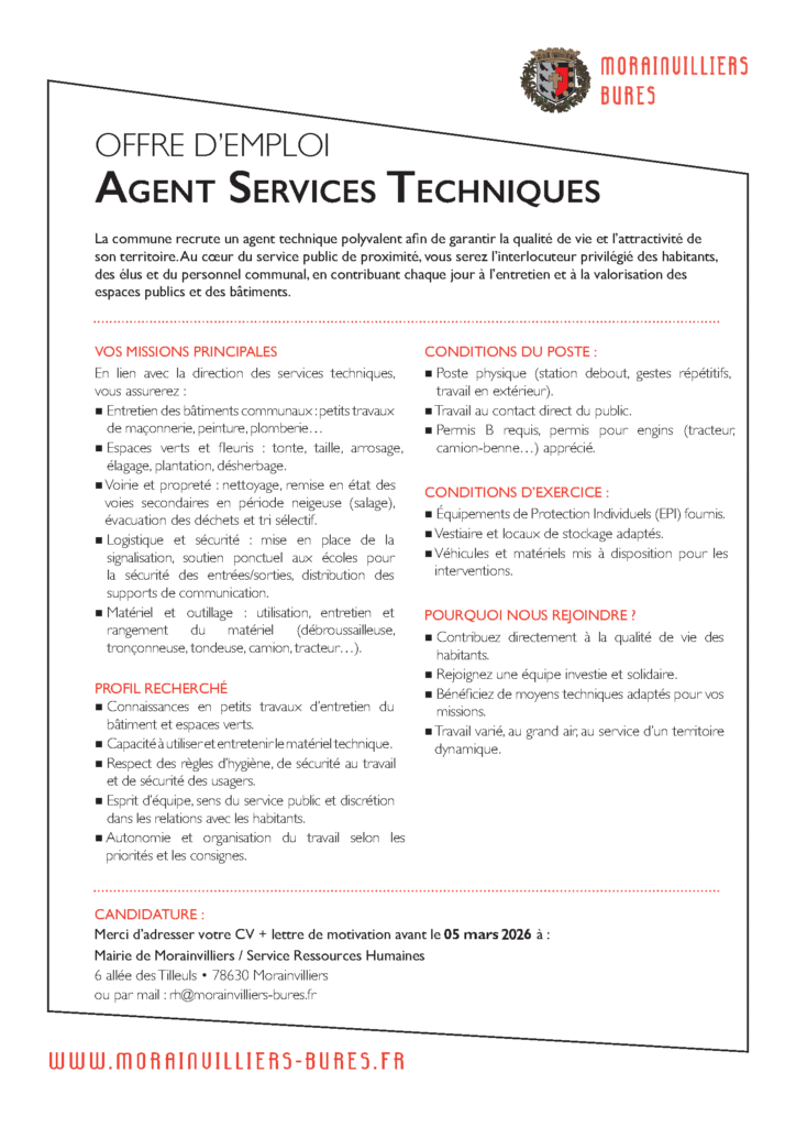 Envoyez Lettre et CV avant le 5 mars 2026 sur RH@morainvilliers-bures.fr
